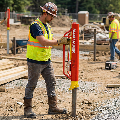 Job sites often have compacted or rocky soil. The Man Saver is a powerful air powered post driver that uses a high-frequency hammering action to break through hardpan and rocky terrain. It is far superior to manual driving and can often drive posts where hand tools fail entirely.